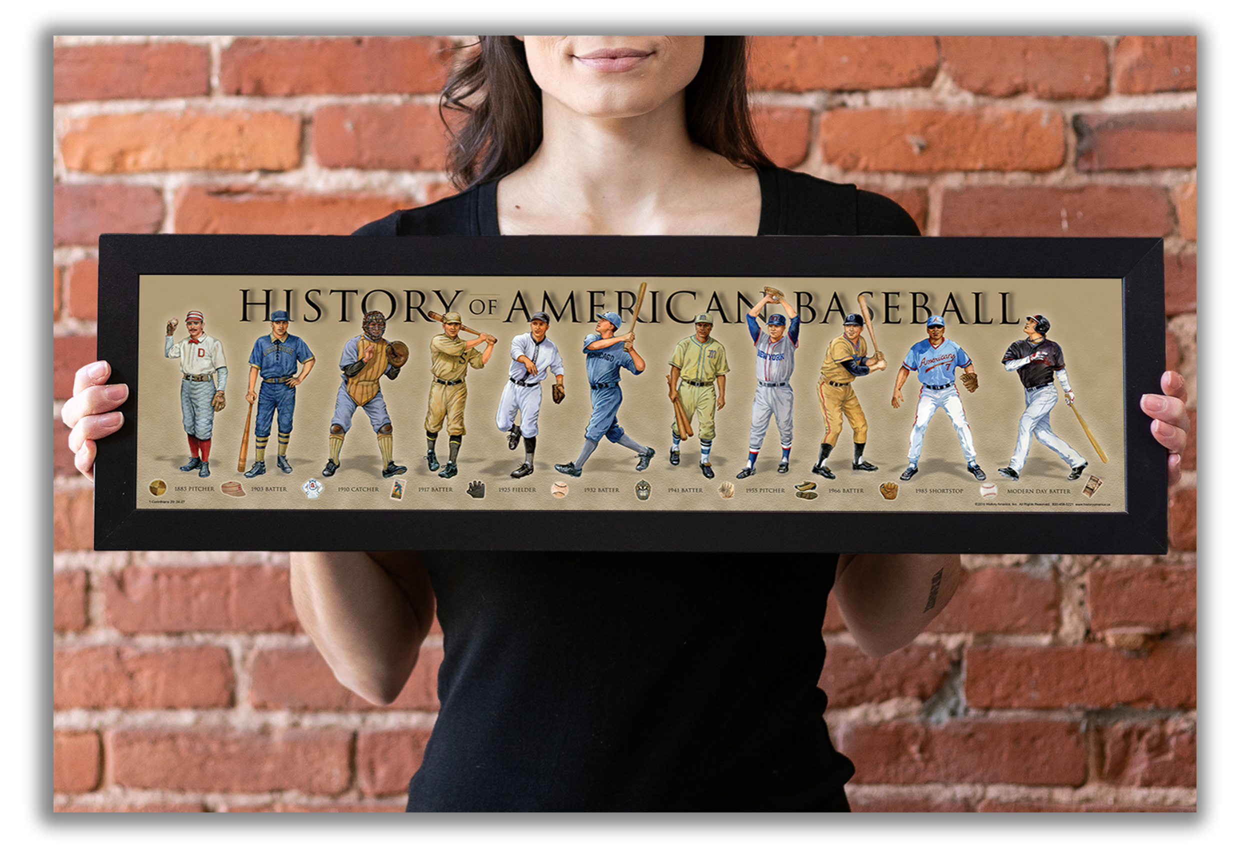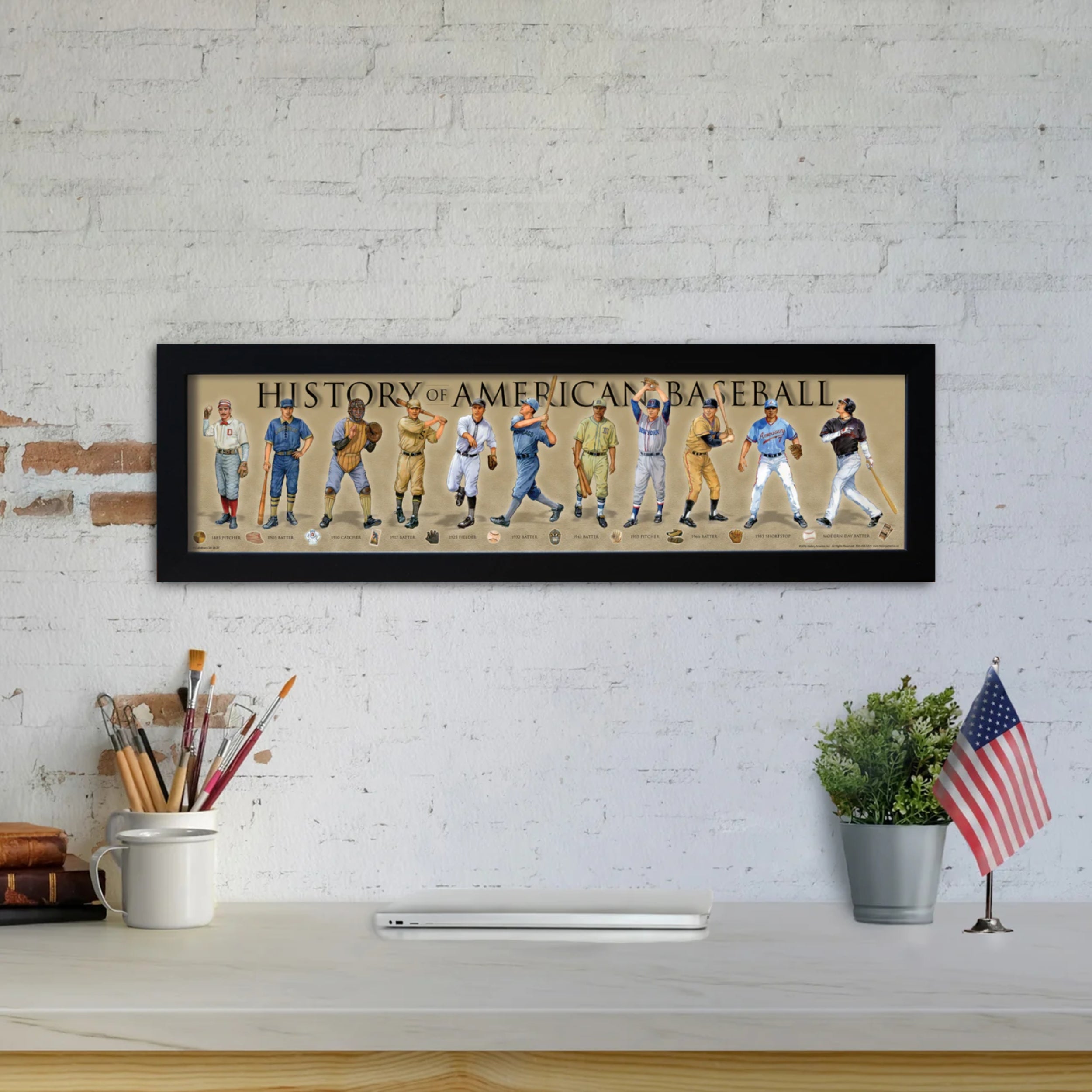 History of American Baseball - Framed 1", printed with a matte finish, 6" x 24"