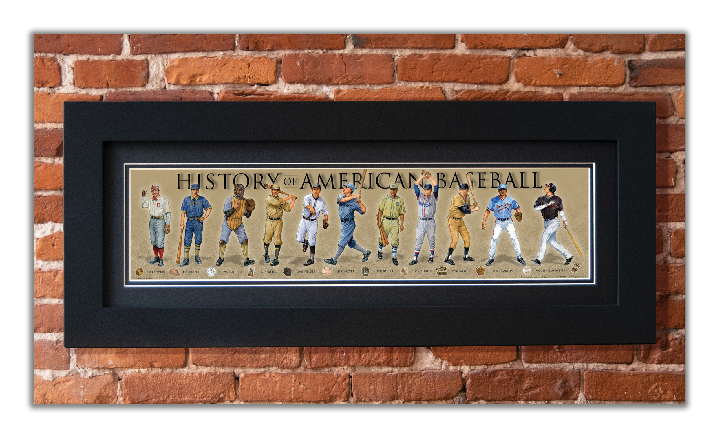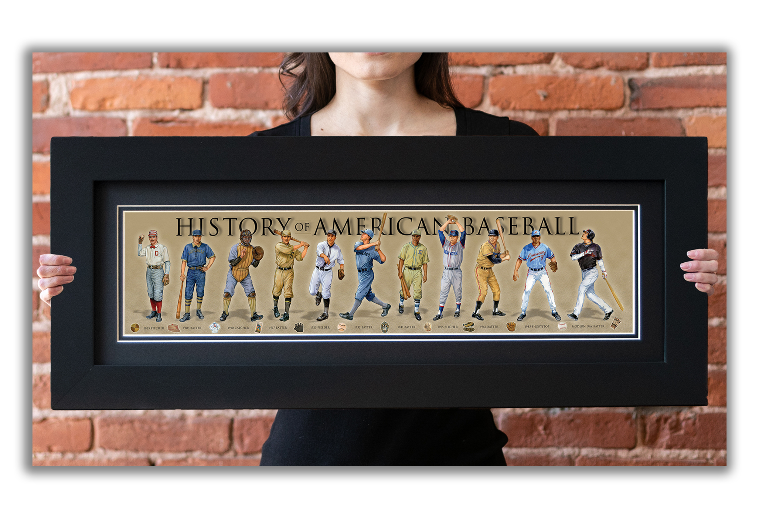 History of American Baseball - Framed 2" Black Double Matted, Flat Molding 6" x 24"