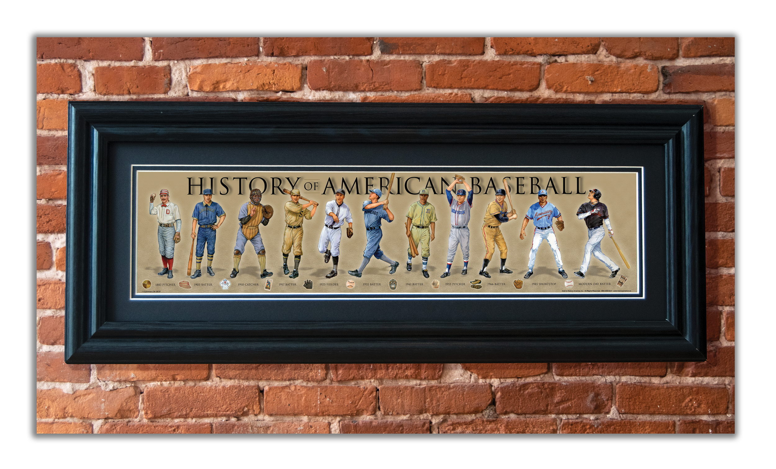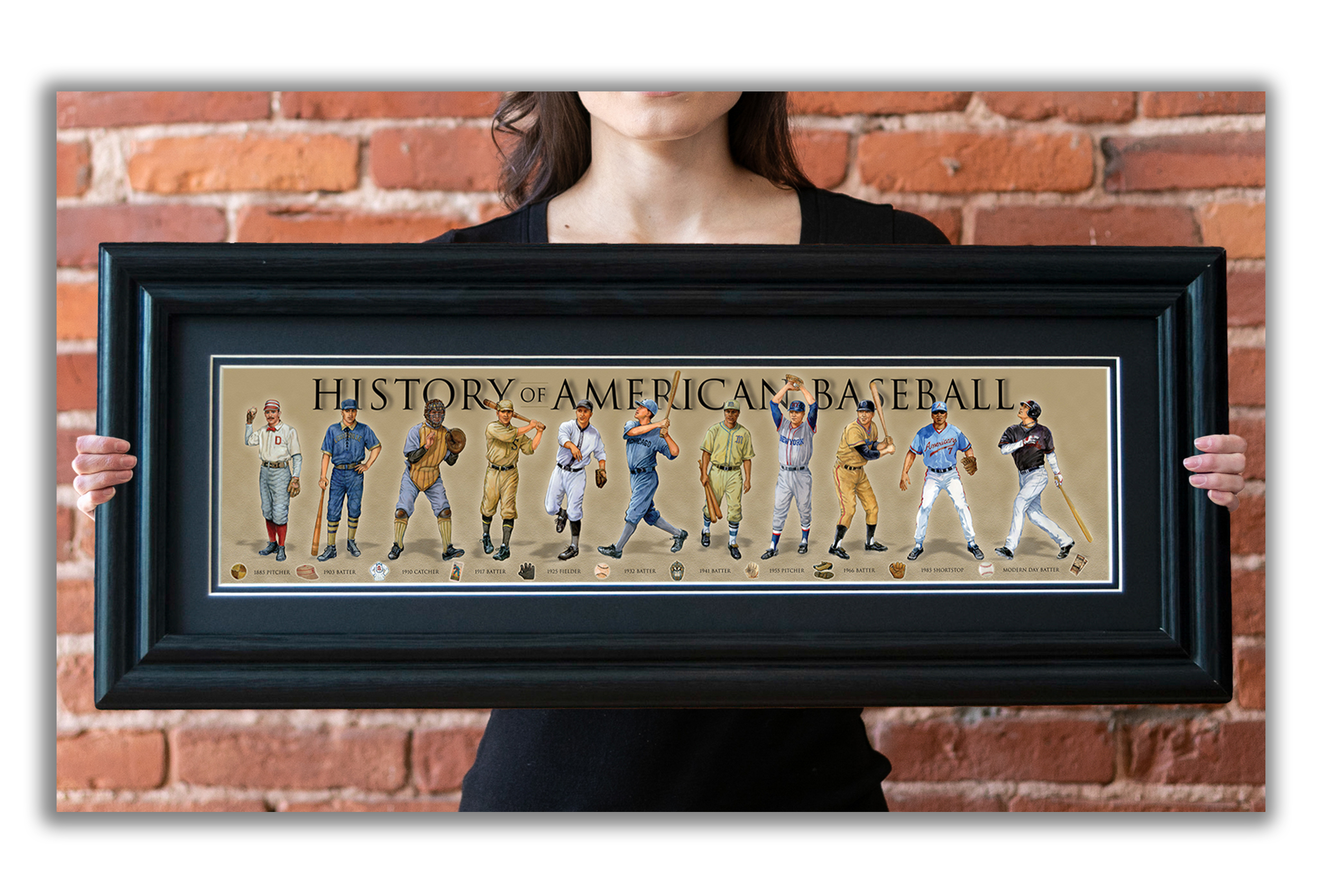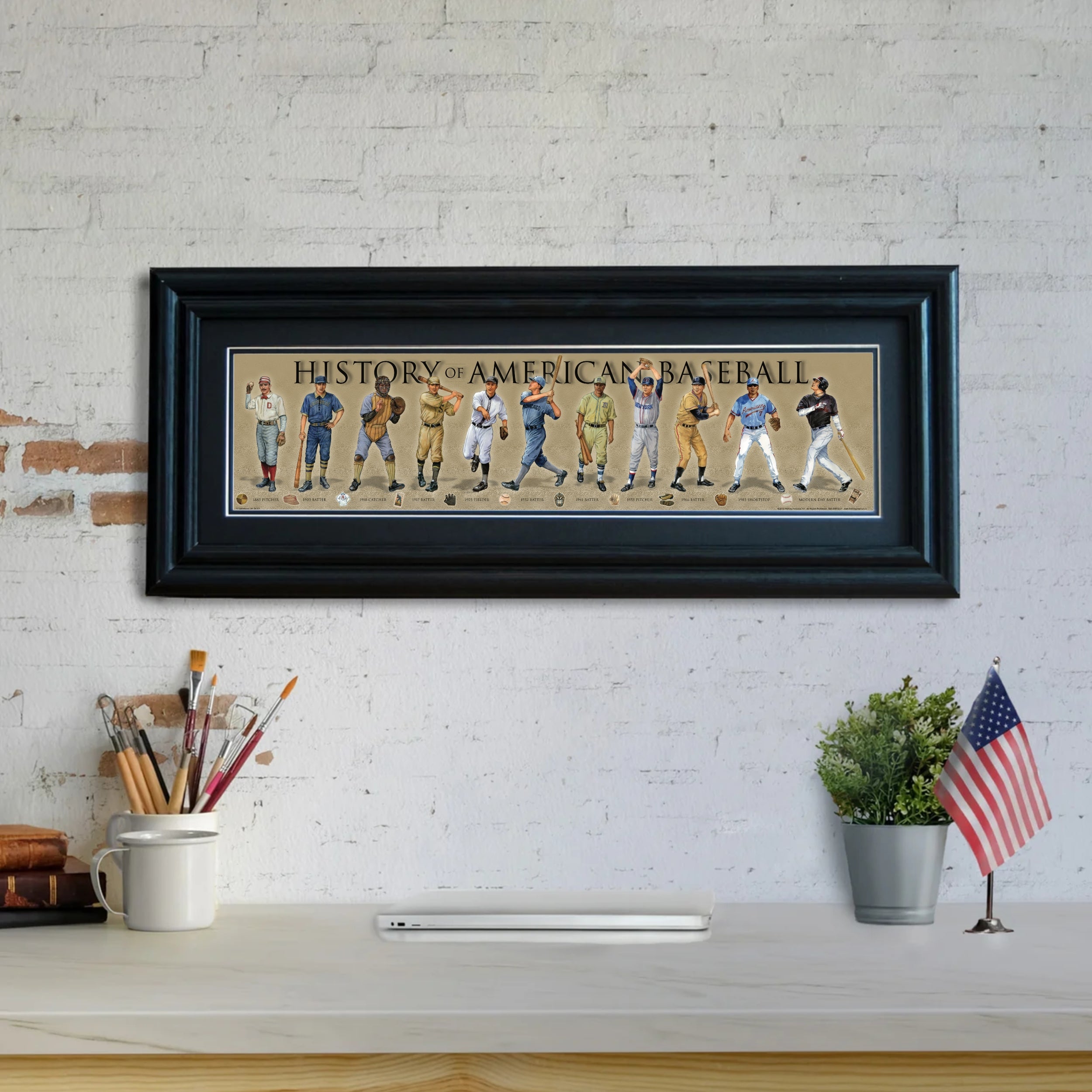 History of American Baseball - Framed 2" Black Double Matted, Grooved Molding 6" x 24"