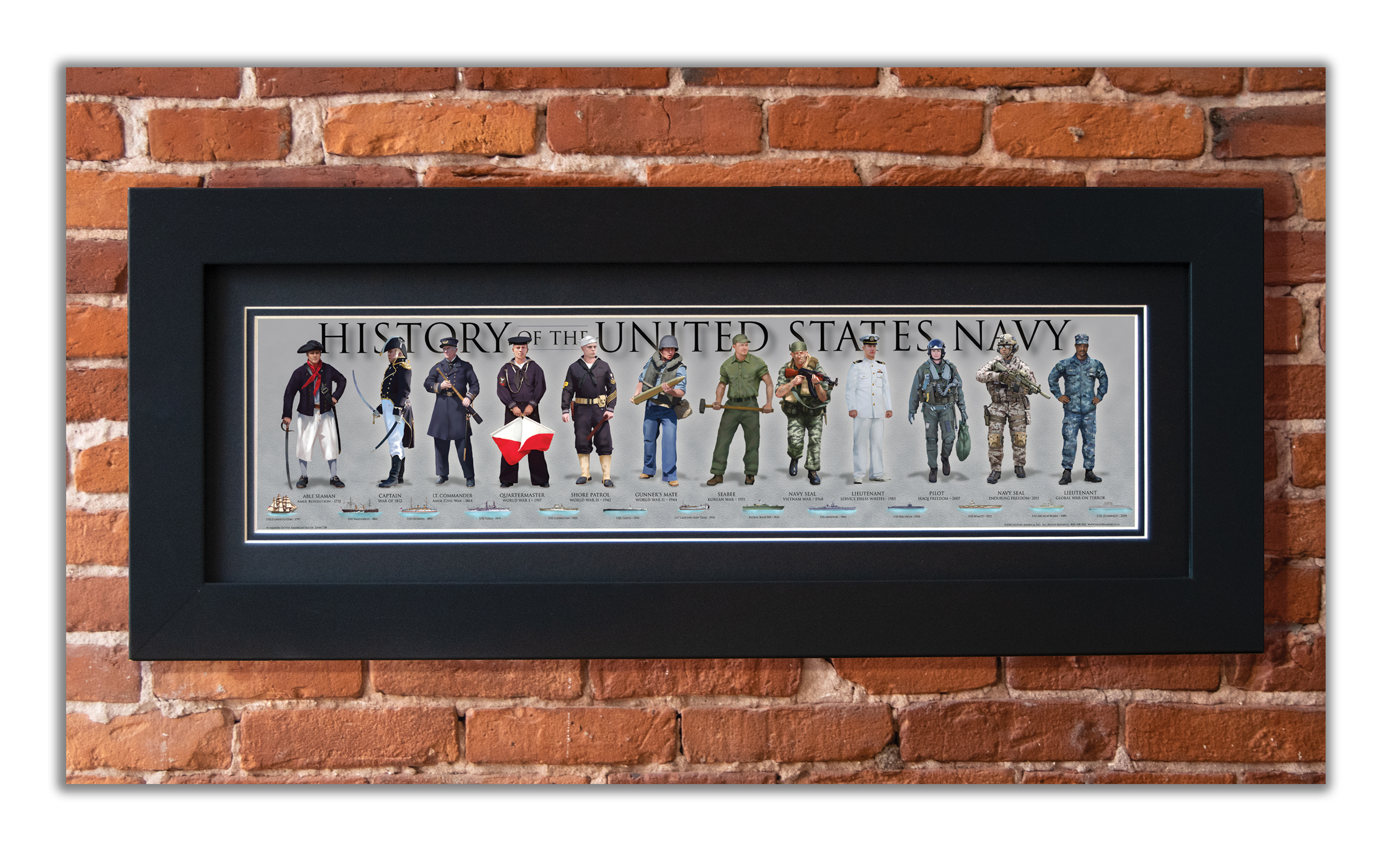 History of the United States Navy - Framed 2" Black Double Matted, Flat Molding 6" x 24"