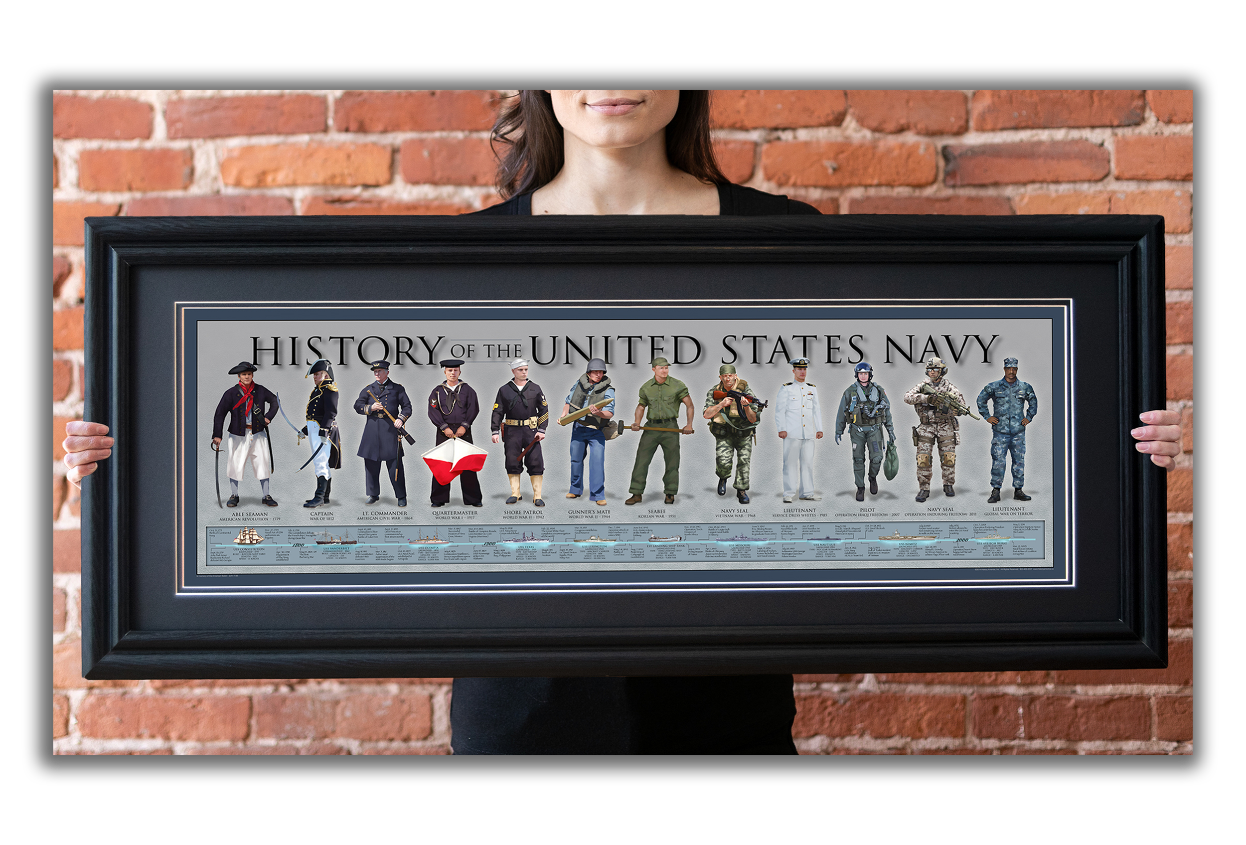 History of the United States Navy - Framed 2” Black Double Matted, Grooved Molding 11 ¾" x 36"