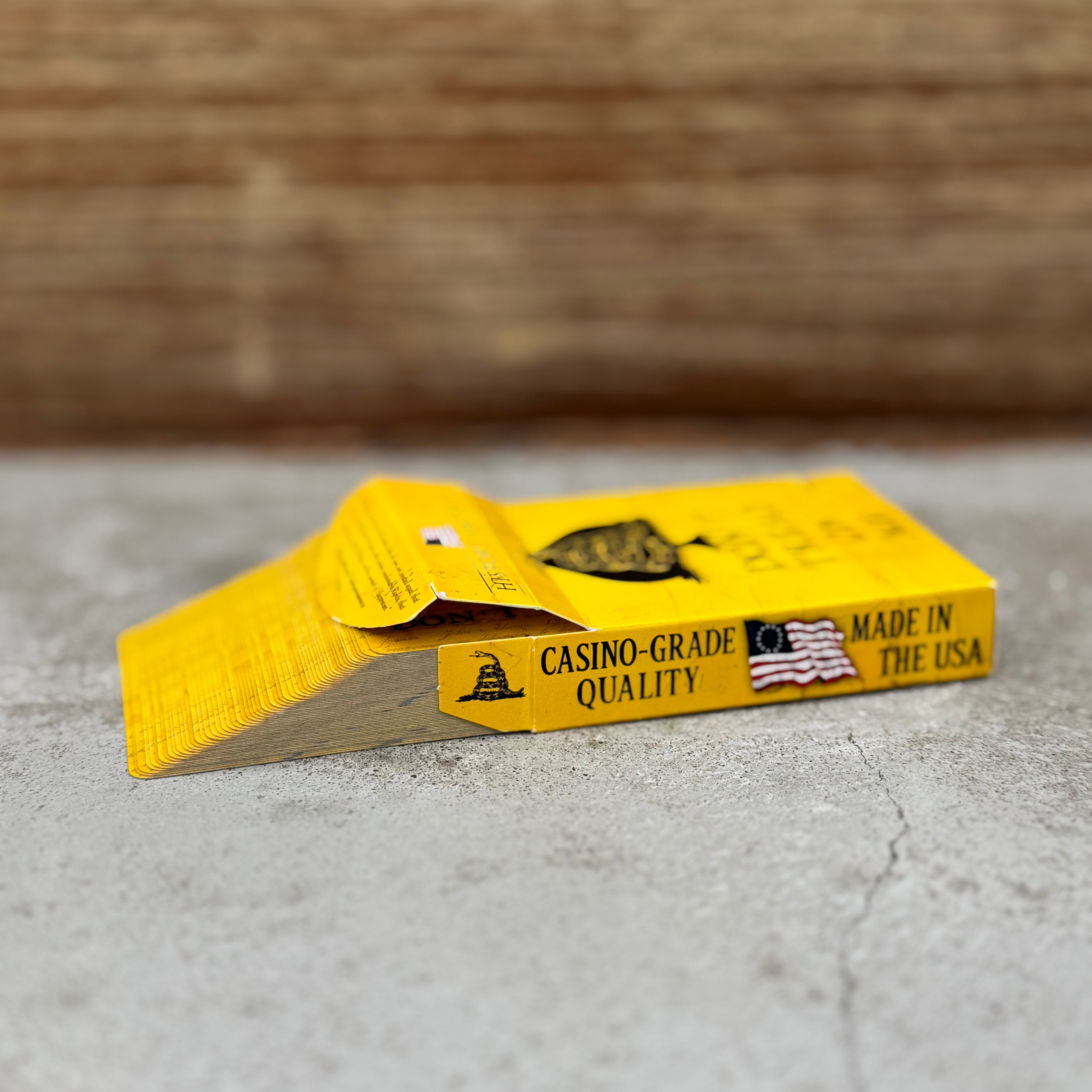 Stand tall with a classic symbol of American independence. The “Don’t Tread On Me” – Premium Casino-Grade Playing Cards are built for everyday play, display, and collection. Featuring the iconic Gadsden flag rattlesnake and bold patriotic design elements, this deck brings heritage, grit, and American spirit to the table.